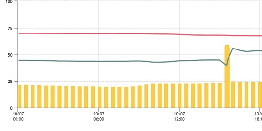計測したデータを折れ線グラフや棒グラフで表示します。表示形式や罫線のカラーは設定することができ、より見やすいカタチで、お届けします。